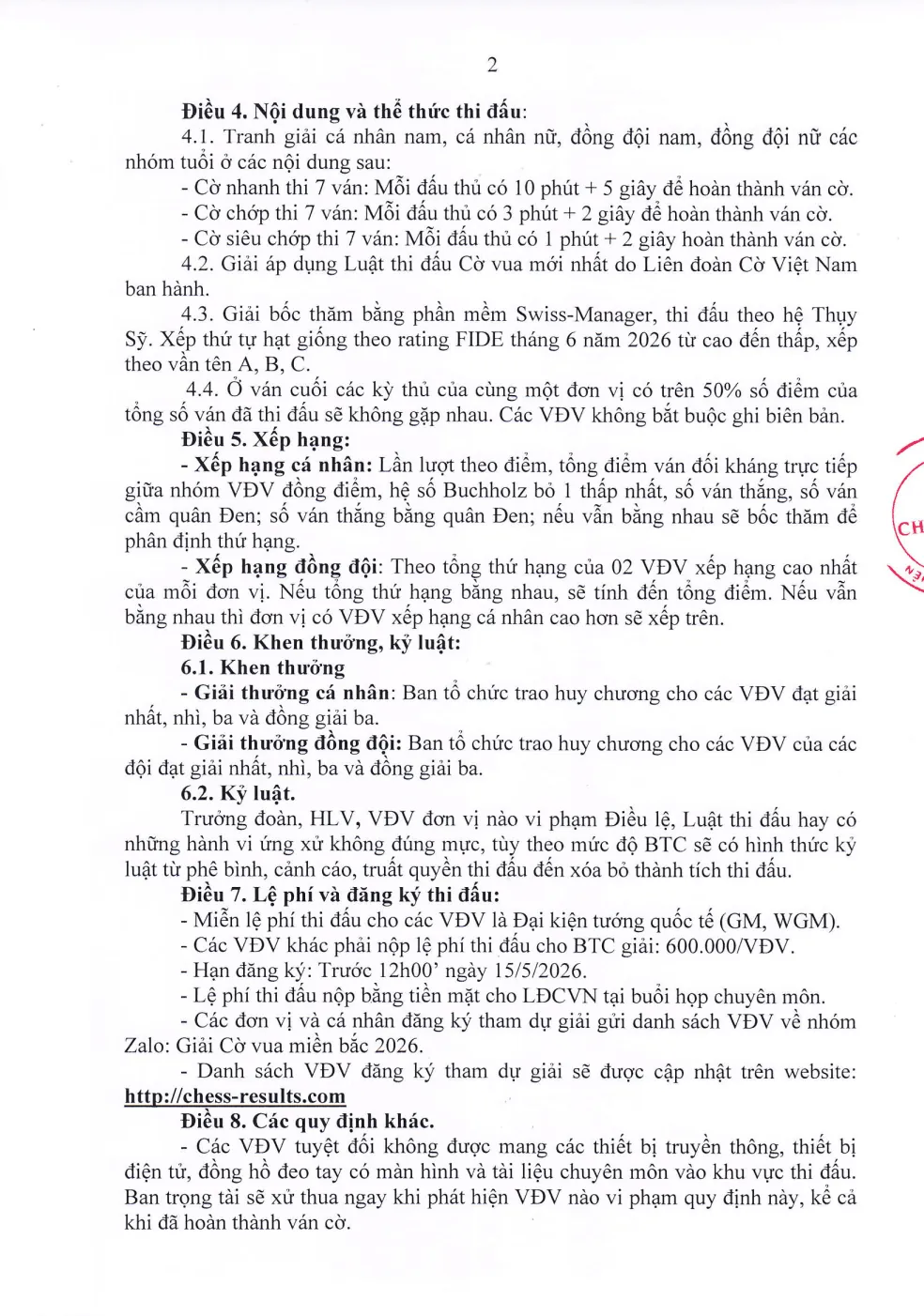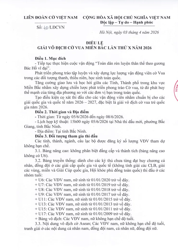 - Đăng ký qua nhóm Zalo: Giải Cờ vua miền Bắc 2026