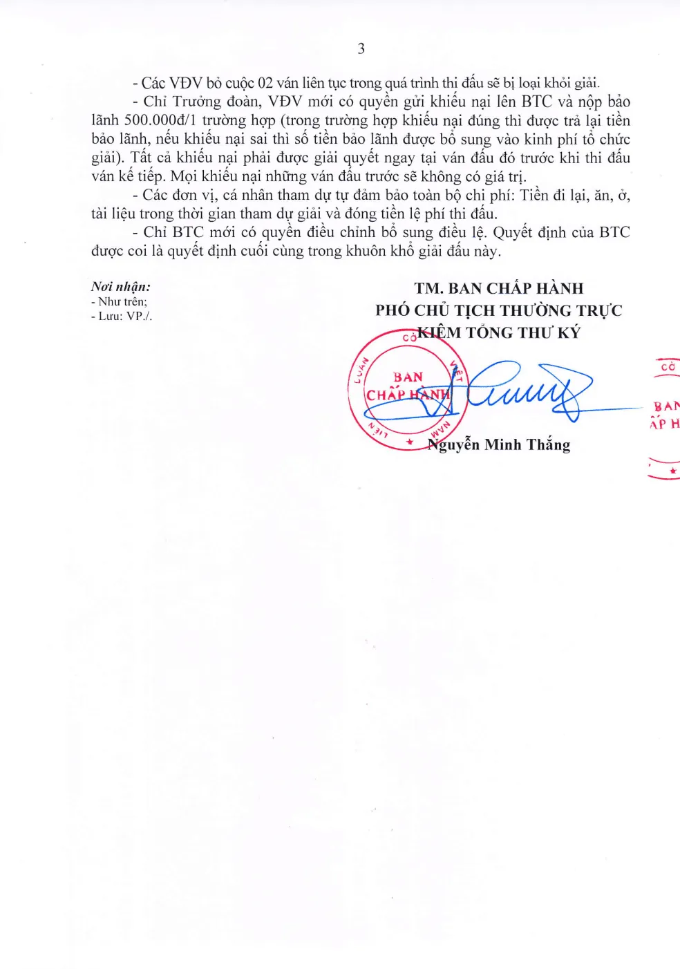 - Chỉ trưởng đoàn hoặc VĐV được khiếu nại